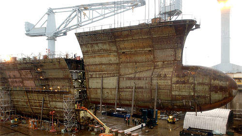You just have to look at the steel keel of the latest US Navy carriers to realize that the US still can build gigantic steel structures, if you have $12 billion or so to spend building it: