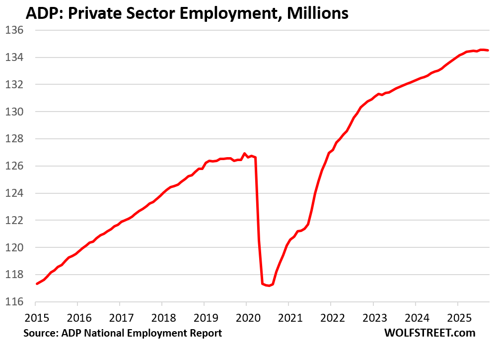 Payroll processing firm ADP conducted its annual preliminary adjustment today to the full-year 2024 Quarterly Census of Employment and Wages data released by the Bureau of Labor Statistics on September 9. The QCEW provides a quarterly count of Paid Employment based on the quarterly payroll tax filings by employers, covering about 95% of payroll jobs, but the BLS releases it annually with a long lag. On September 9, the BLS announced its own preliminary benchmarking adjustment to the QCEW for the 12-month period through March 2025 (we discussed this mess here). Today it was ADP’s turn.
