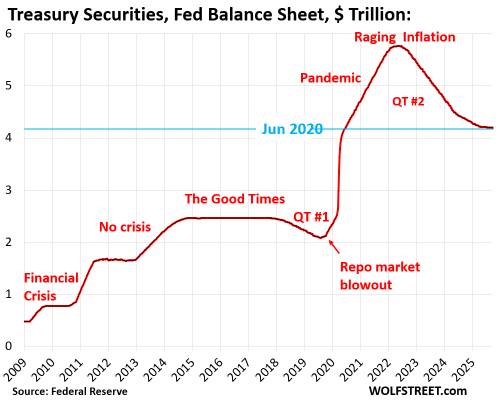 Since the reduced pace of QT began in June 2025, the balance sheet has declined on average per month by $22 billion.