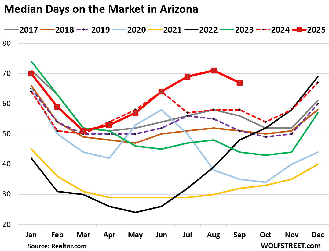 In Arizona, homes sat 67 days on the market, 16 days longer than in 2018 and 2019, and 11 days longer than in 2017: