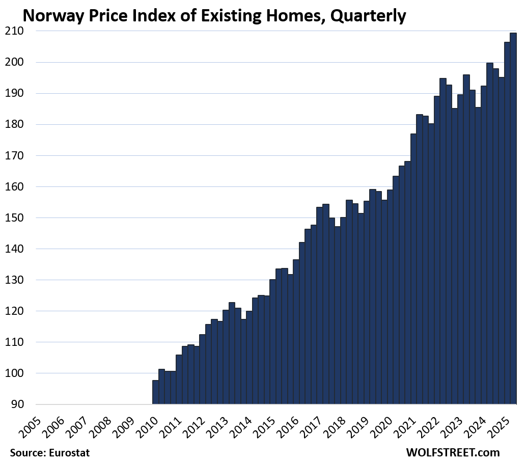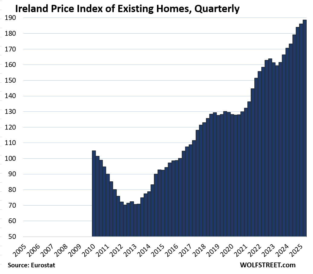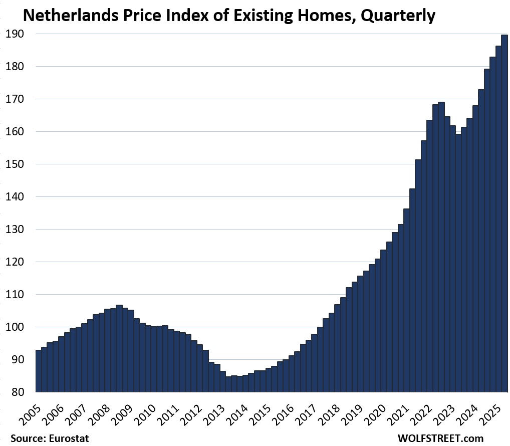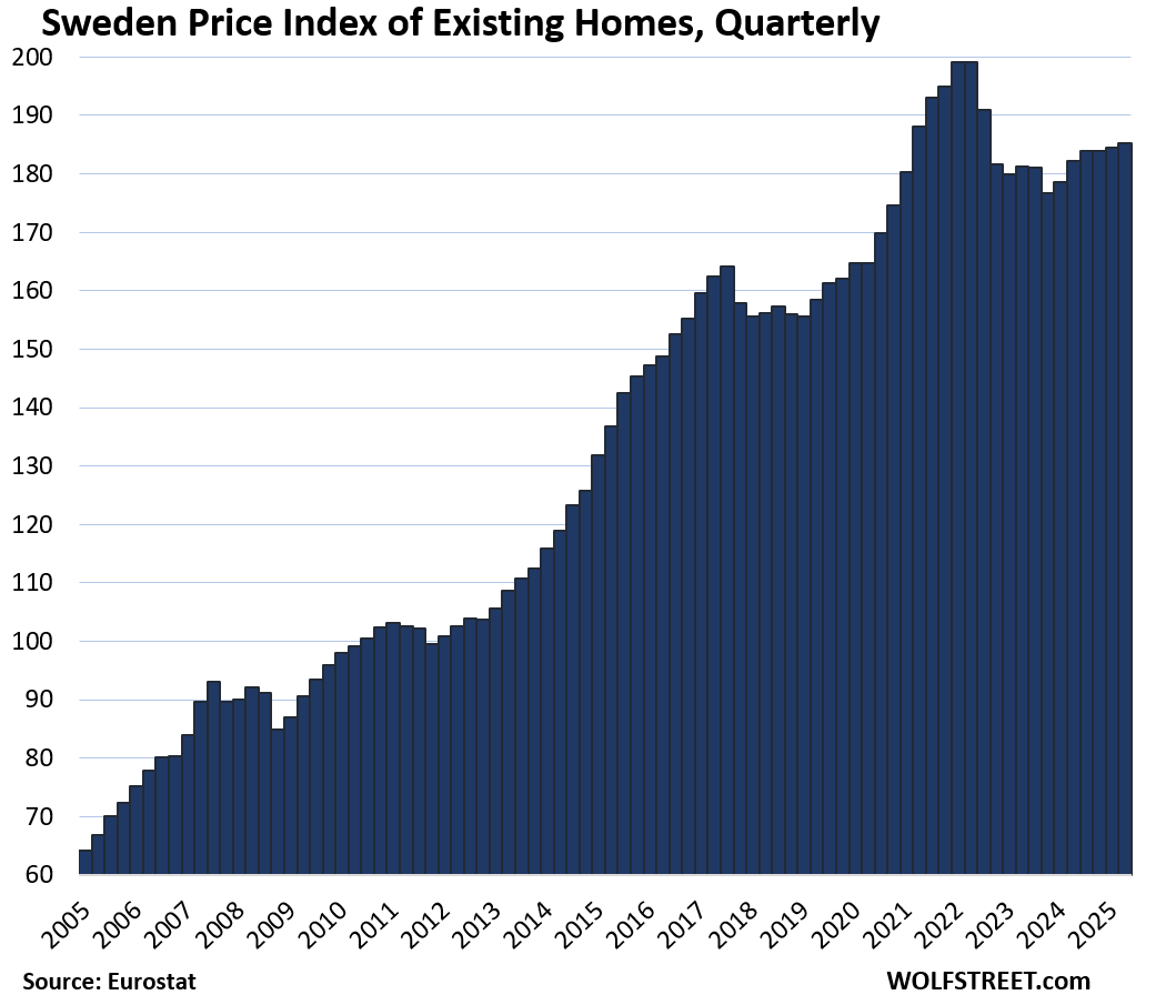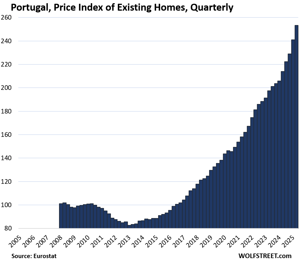 In one (Finland), home prices have fallen back where they’d been in 2010. In another (Italy), prices are still well below 2010 though they’re surging now. And in another (Spain), prices just now rose above the prior bubble peak 18 years ago, whose dramatic implosion had shaking the country.