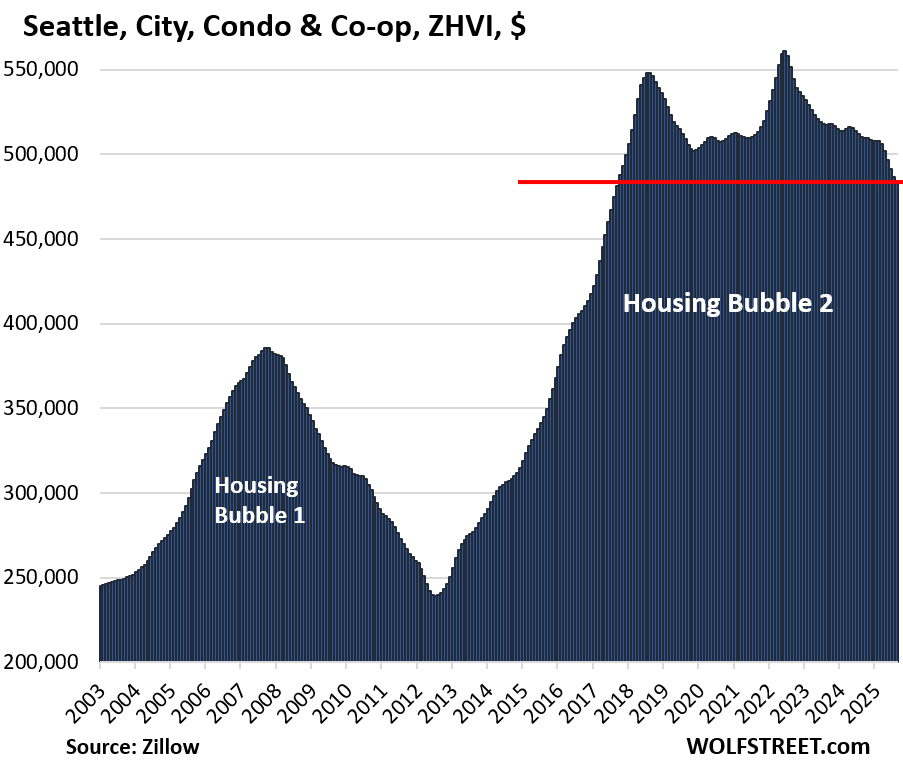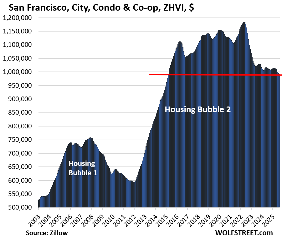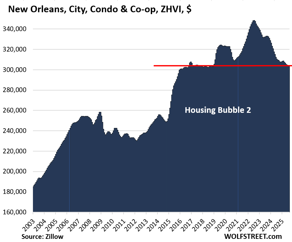 And in case you missed it: The Most Splendid Housing Bubbles in America: Price Drops & Gains in 33 Large Expensive Metros in September 2025