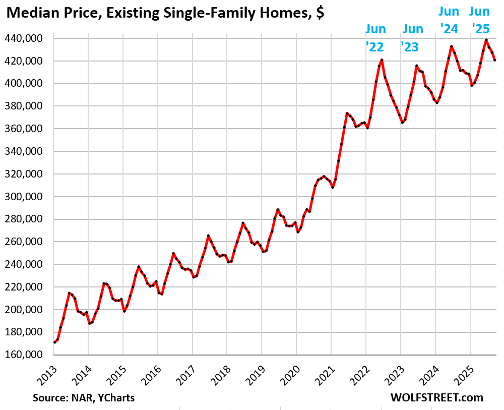 This measure of the median price of single-family homes had exploded by 47% from June 2020 through June 2025, most of it during the two years of mid-2020 to mid-2022.