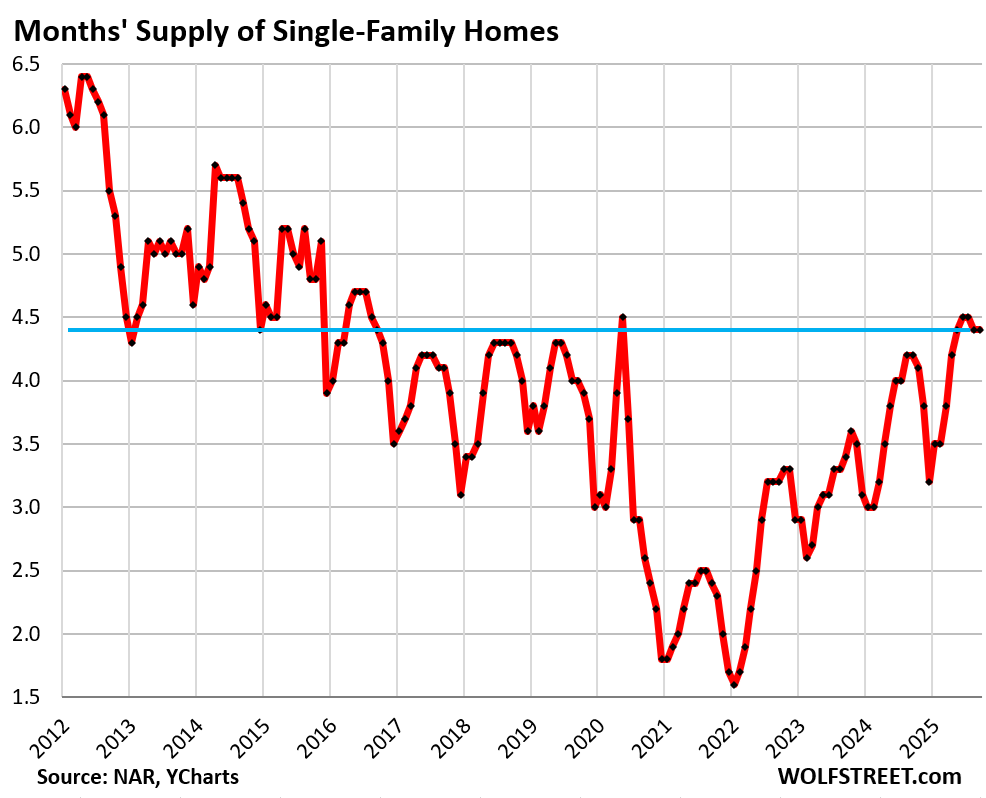 Supply of single-family homes remained unchanged at 4.6 months. Over the past five months, supply has been the highest since Lockdown May 2020, when closed sales had collapsed, and before then the highest since August 2016.