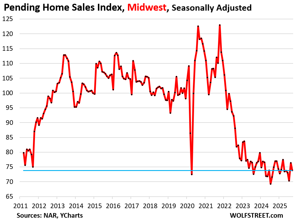 In the Midwest, pending sales fell by 3.4% in September from August and by 1.5% year-over-year.