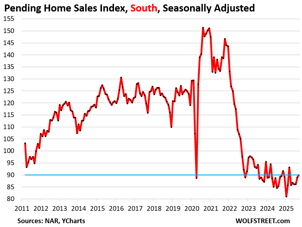 In the South, pending sales ticked up 1.1% in September from August, and by 0.9% year-over-year, seasonally adjusted, according to the NAR today.