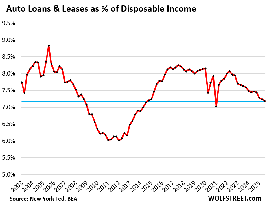 Despite higher unit sales of new and used vehicles in 2025, total balances of auto loans and leases in Q3 remained at $1.66 trillion, essentially unchanged for an entire year, according to data from the New York Fed, based on Equifax credit report data.