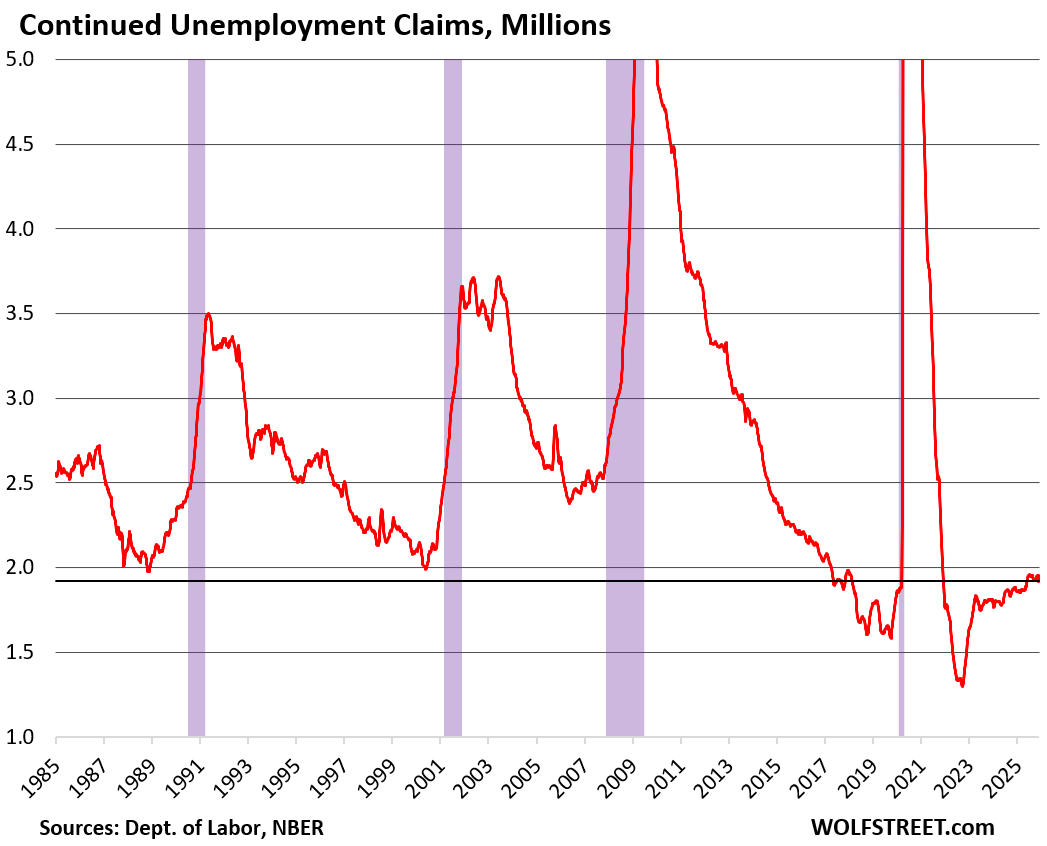 It indicates that people remain on unemployment insurance rolls somewhat longer than in 2022-2024 and in 2018-2019, but not as long as they did in the prior decades.