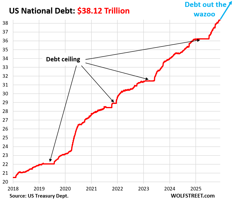 The Treasury debt that drives all this and that has to be funded and refunded through these auctions hit $38.35 trillion as of December 10, up by $2.2 trillion from a year ago.