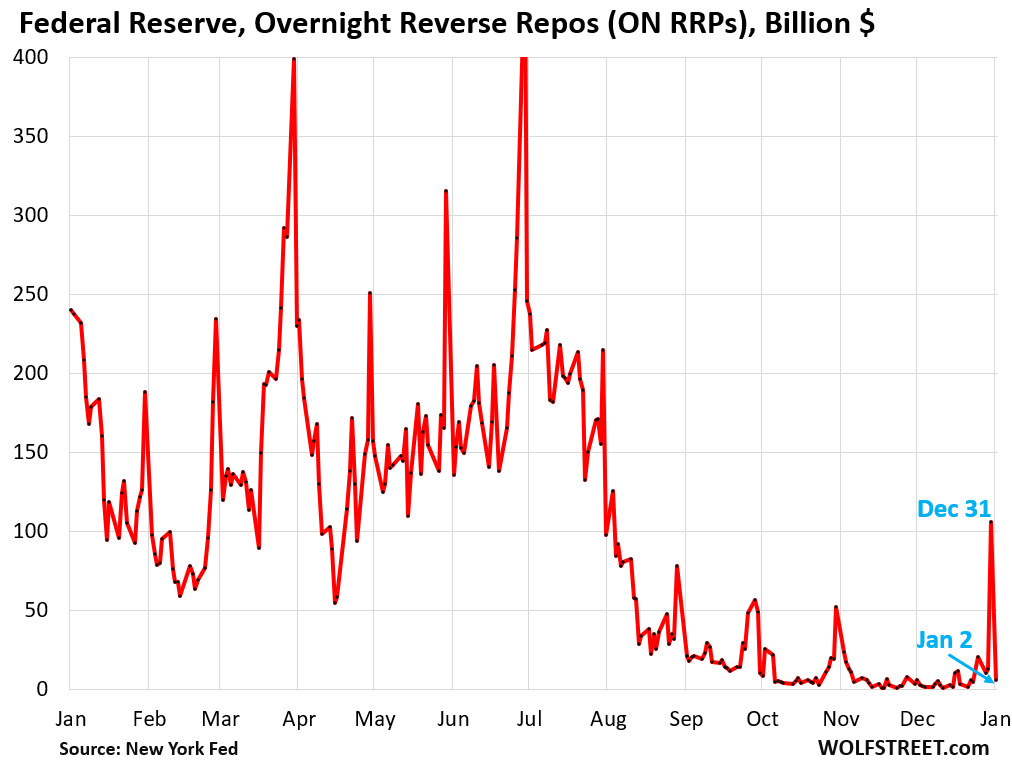 This is now the dynamic for certain periods of the year, such as year-end, quarter-end, month-end, and around tax days. It’s just that the last day of the year also happened to be Wednesday, the closing day of the Fed’s weekly balance sheet.