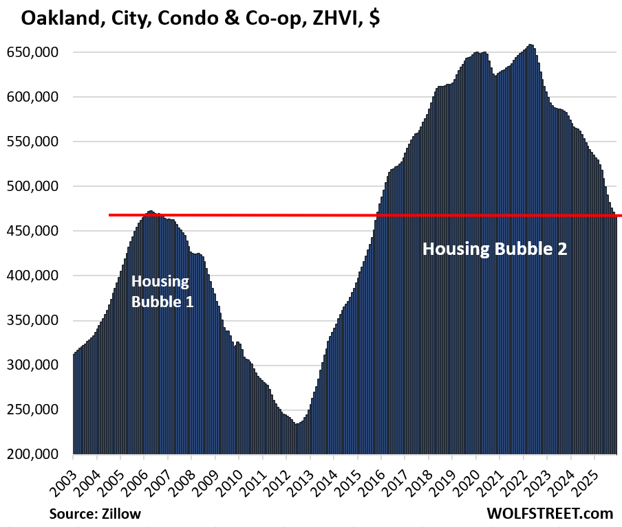 Condo Prices Now Below 2005-2007 Housing Bubble Peaks in 8 Cities, including Oakland, Chicago, and 2 Cities in Florida