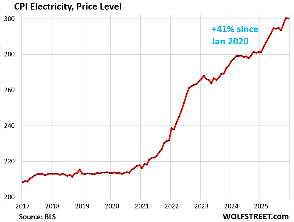 The Consumer Price Index for electricity has surged by 6.7% year-over-year, and by 41% since January 2020. The price that households pay for electricity on their monthly bills – unlike the prices they pay for commodity-based fuels such as gasoline or natural gas – is not volatile. It’s largely set by regulated utilities that face no competition other than from rooftop solar installations. Monthly charges are a mix of fixed fees, service charges, and charges per kWh used. And they add up.