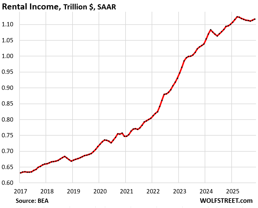 Rental income from personally owned rental properties rose by 2.0% year-over-year to $1.11 trillion.