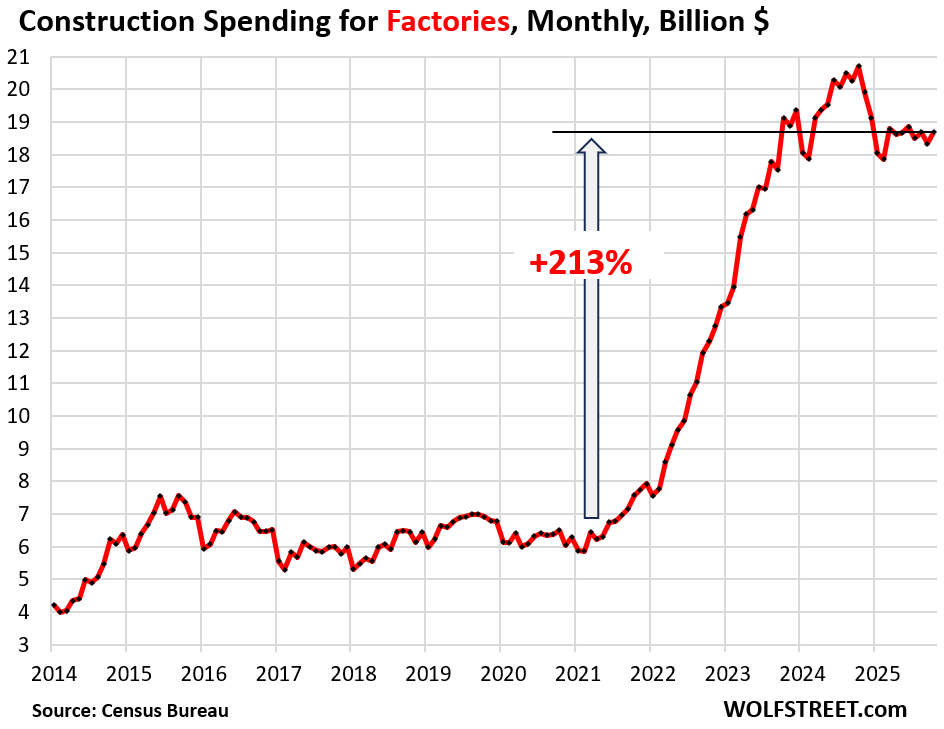 As we have seen in other data, part of this economic growth is fueled by strong business investment, in part driven by the AI infrastructure boom. It takes a while for the announced AI infrastructure projects to actually turn into orders for manufacturers, and that boom of announcements in 2025 – the portion of projects that will actually come to fruition – will turn into orders for US manufacturers over time.