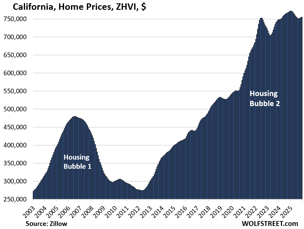 Home prices in California are down 2% year-over-year and roughly unchanged since July 2022.