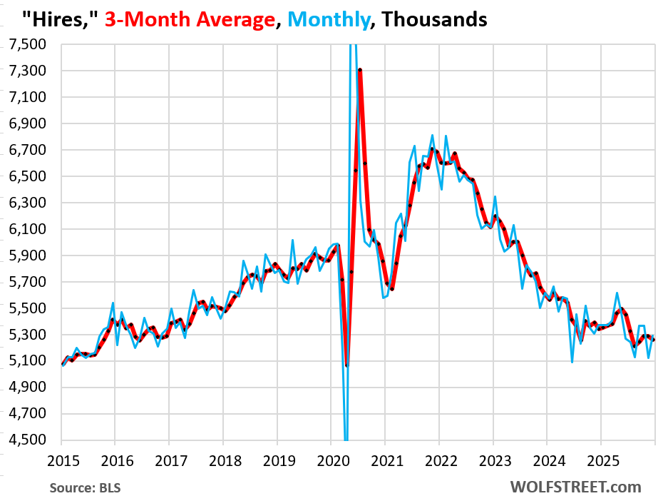 For job seekers, the much calmer churn is tough. The low number of quits as workers cling to their jobs, and the low number of layoffs and discharges as companies hang on to their workers, have the effect of creating fewer job openings, and therefore companies don’t need to hire as many people to fill those newly vacant positions.