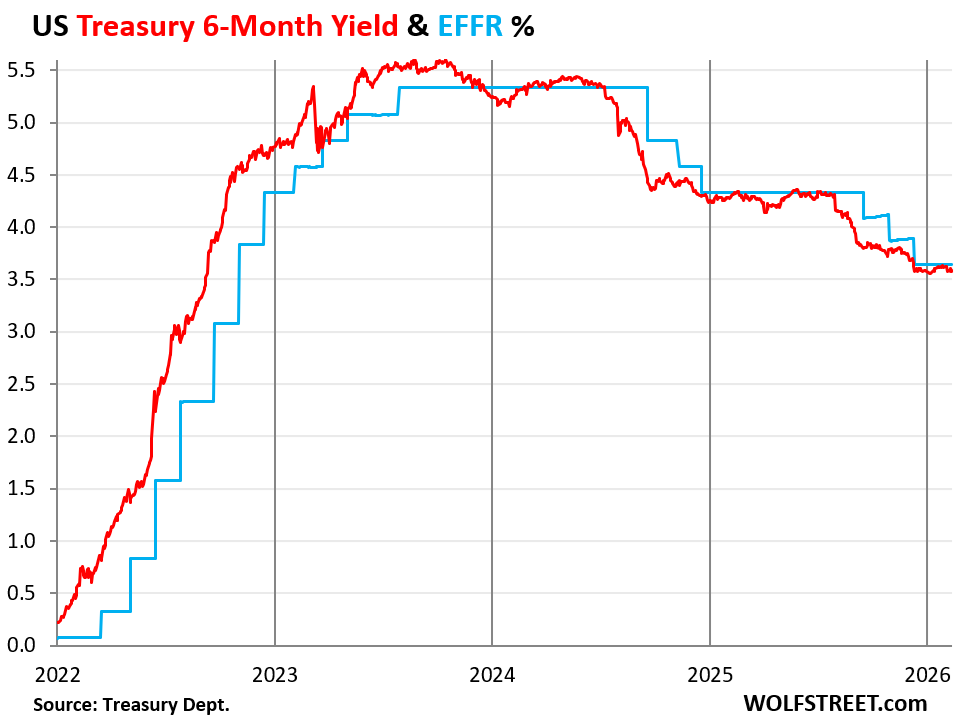 In the secondary market, the 6-month yield closed on Friday at 3.61%, also lower than the EFFR.