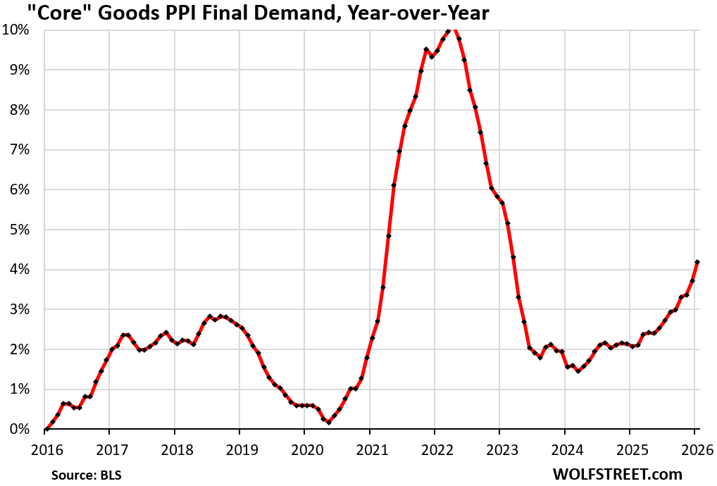Year-over-year, the core goods PPI jumped by 4.2%, the worst since March 2023.