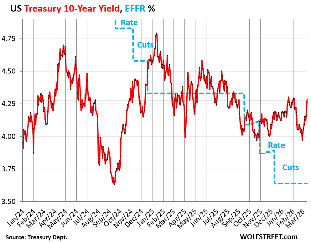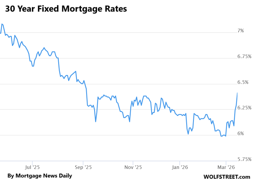 It was a rough week in the Treasury market and the mortgage market. Inflation fears spread amid surging gasoline prices and some lousy inflation data that don’t even yet include those surging gasoline prices: The Fed-favored core PCE Price Index for January rose to 3.1%, worst in nearly two years, when the Fed’s target for it is 2%. And worries cropped up about the deficit as the financial costs of the war in Iran would have to be borrowed, and reluctant new buyers would have to be enticed by higher yields to buy that debt.