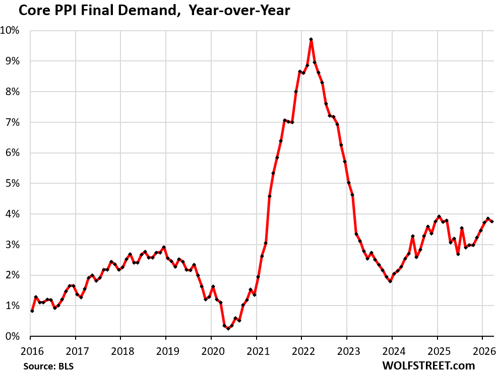 Year-over-year, core PPI decelerated a hair to 3.75%.